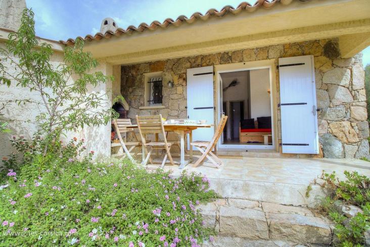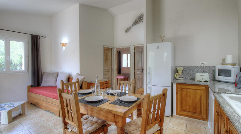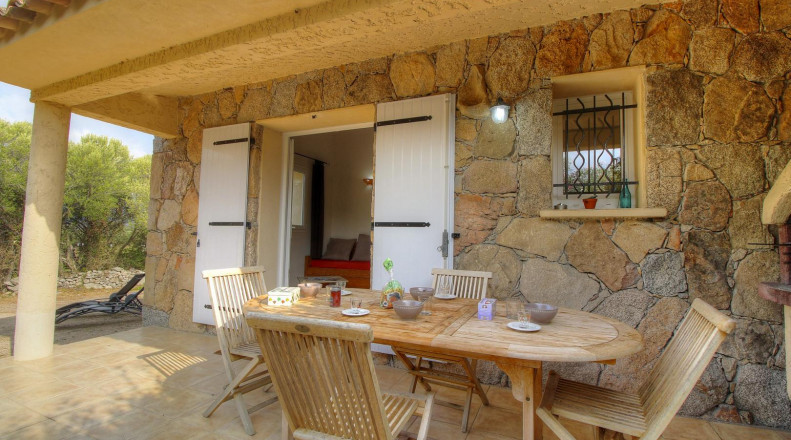 Gîte de 48 m² mitoyen avec l'autre gîte, sans vis-à-vis, de plain pied. Parking à l'intérieur dans un grand terrain clos, idéal pour les enfants. A la campage, à 17 km de Bonifacio et 20 km de Porto-Vecchio. Plages à 15 minutes en voiture.
